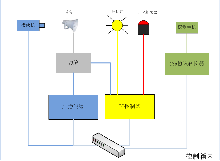 前端探測子系統結合物理圍界實際情況,防止人員攀爬、強力破壞圍欄、越過圍欄等各種入侵方式,系統采用在圍欄上或磚墻上掛裝智能入侵探測器,實現圍界入侵目標檢測、識別及定位,并能準確區分入侵者與非入侵行為。當上述入侵行為觸發報警時,系統立即調用聯動控制子系統,利用視頻監控圖像,值班人員可迅速直觀的看到現場的實際情況,與此同時,系統集成平臺后臺系統會發送音頻信號至現場的音頻設備,向現場進行聲音告警;值班人員亦可通過麥克風設備向現場通話告警,警告可疑人員。